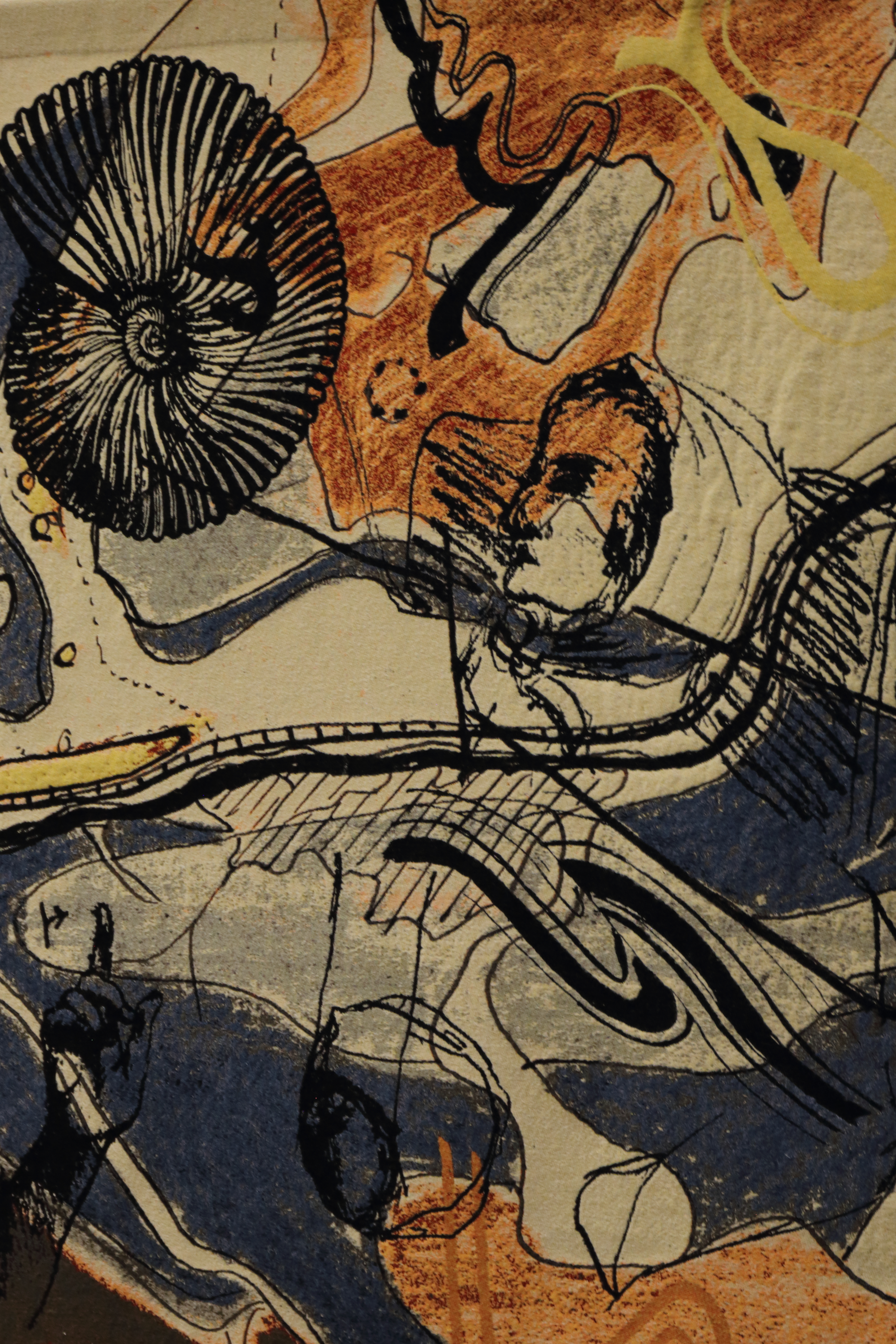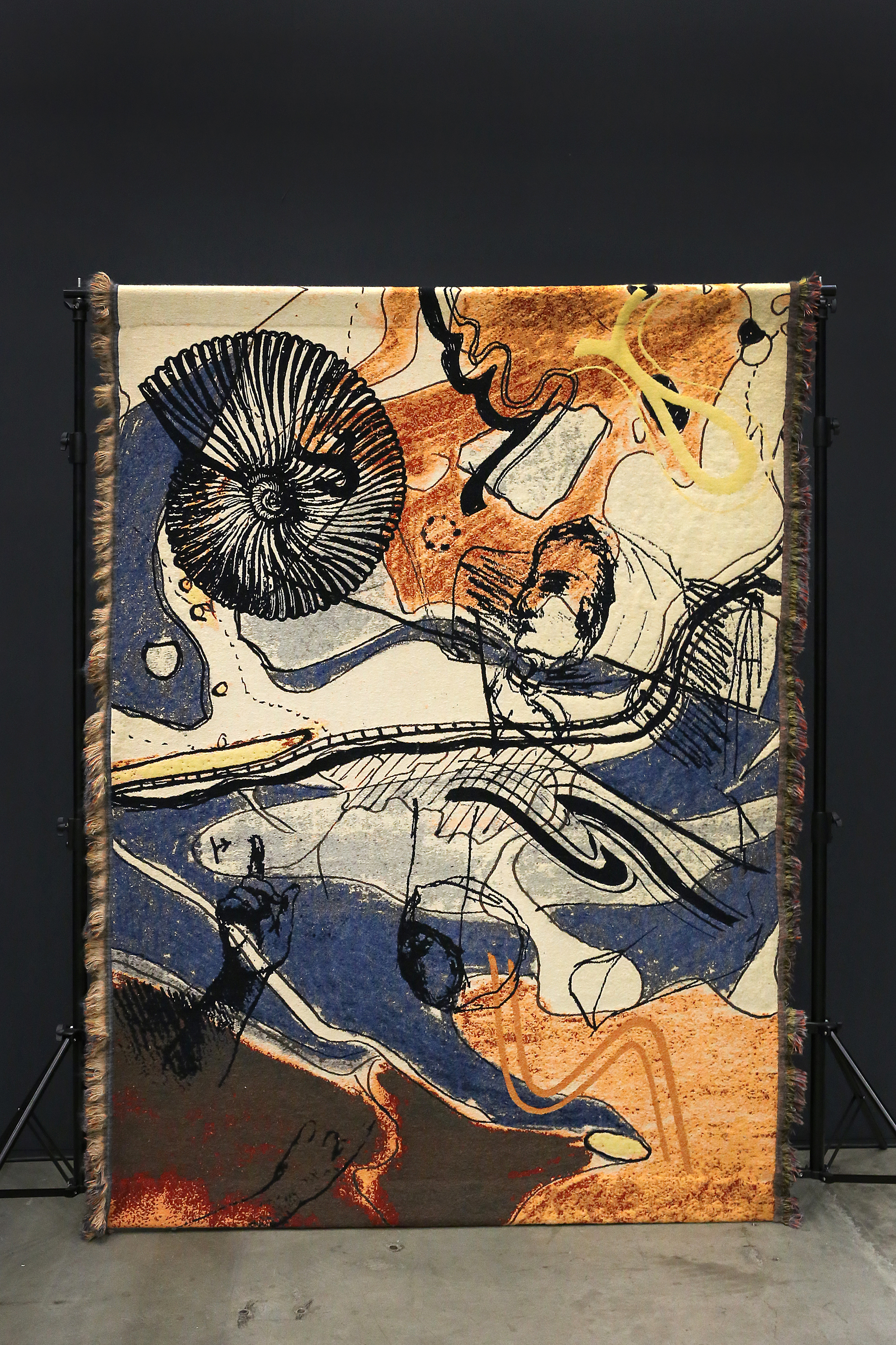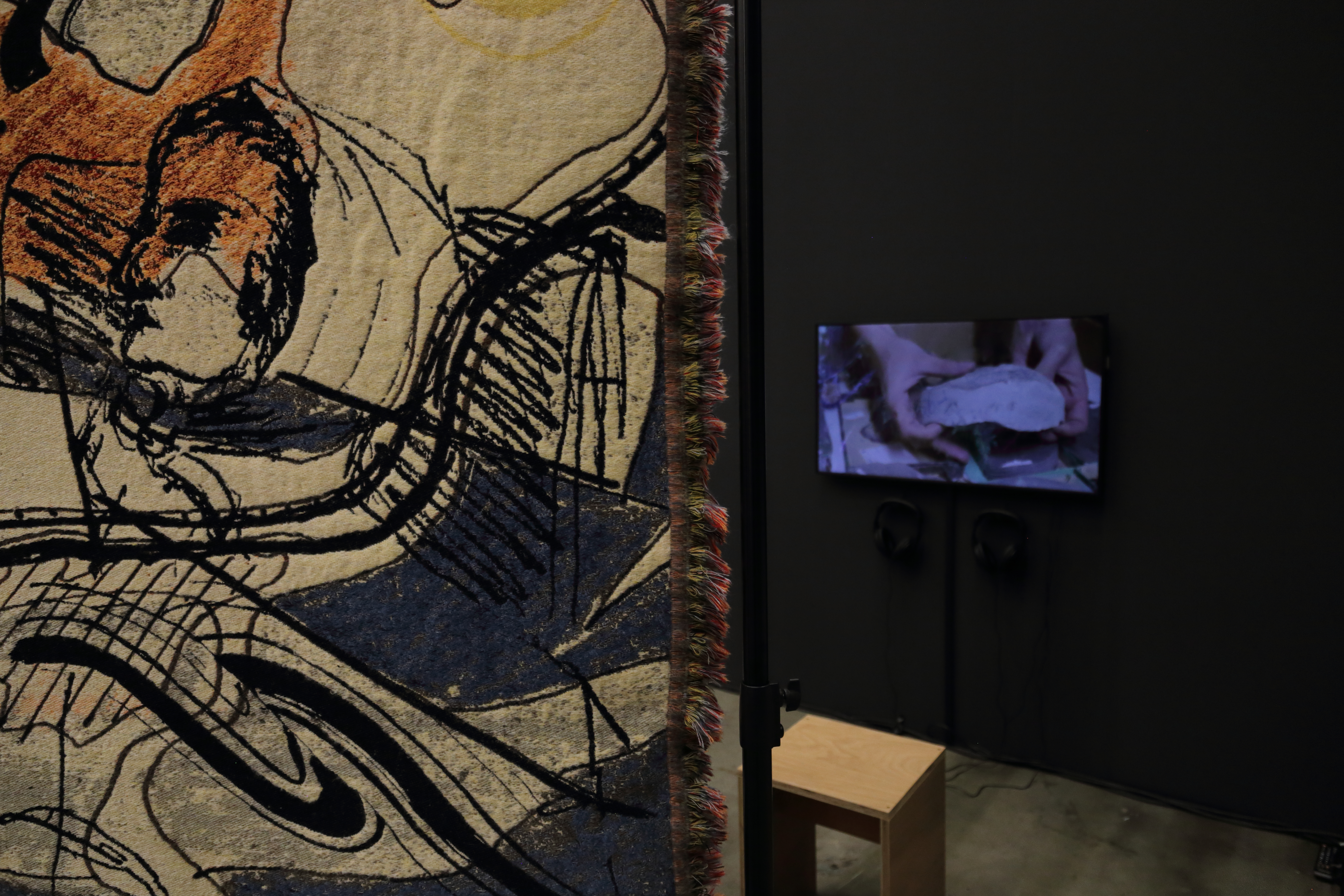 Woven tapestry (230 by 165 cm), Mohair, Cashwool, Trevira, based on personal archive material from Eli Heimans and images from ‘Geologie-boekje, een A-B-C voor de beginnende amateurs’ (Eli Heimans, Amsterdam, W. Versluys, 1913), Uit ons Krijtland (Eli Heimans, Amsterdam, W. Versluys, 1911) and ‘Tussen de bergen en de zee, de wordingsgeschiedenis der lage landen’, (Dr. J.I.S. Zonneveld, Utrecht, Bohn, Scheltema & Holkema, 1980). Produced in the TextileMuseum/ TextielLab Tilburg. Installation view: Art Rotterdam, Prospects and Concepts 2020, film stills.
